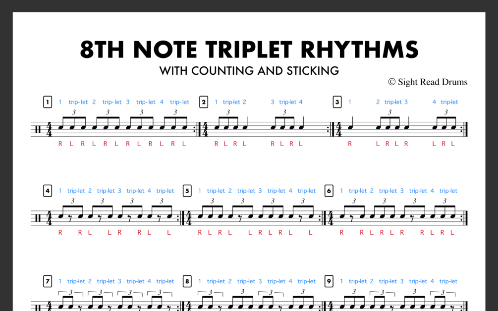 8th Note Triplet Rhythms With Counting And Sticking For Drums