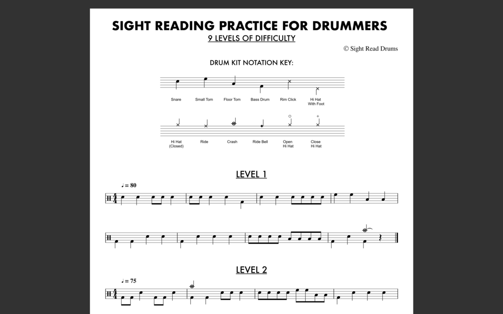 Sight Reading Practice For Drummers - 9 Levels Of Difficulty